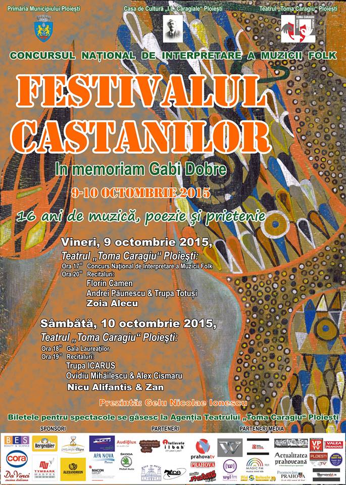 În perioada 9-10 octombrie, la Ploiești, va avea loc Festivalul Castanilor-In Memoriam Gabi Dobre. Evenimentul ce poartă numele iniţiatorului şi regretatului jurnalist Gabi Dobre, este o manifestare cultural-artistică de mare amploare, care se adresează grupurilor muzicale şi interpreţilor individuali de muzică folk, cantautori din România. Anul acesta va avea loc cea de-a XVI-a ediție, astfel: