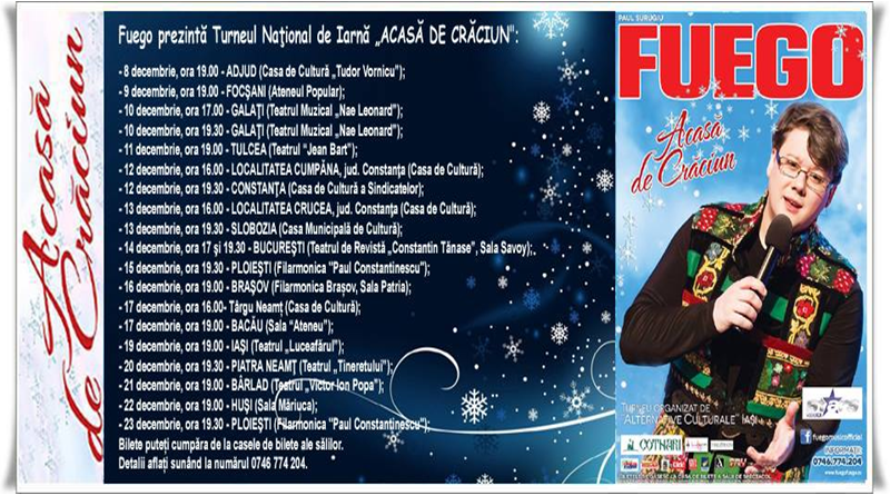 Fuego în turneu național cu spectacolul „Acasă de Crăciun”
