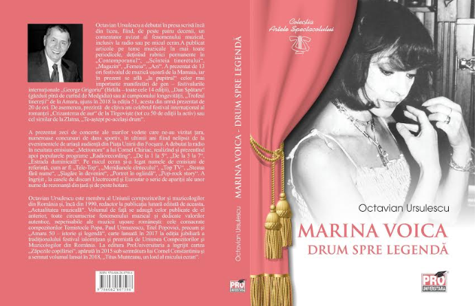 Îndrăgita cântăreață Marina Voica va fi, luni, 1 octombrie, protagonista unui eveniment unic pentru cariera sa deosebită. Octavian Ursulescu a scris cartea ”Marina VOICA, drum spre legendă” ce ca avea lansarea luni, 1 octombrie, ora 14.00 la Palatul Cercului Militar Național, Sala de Marmură (etaj 2).Înafara eroinei cărții, cu recital ”live”, acompaniată de Fanfara Militară (Muzica Reprezentativă a Ministerului Apărării Naționale) și cu alte surprize, vor fi prezente numeroase personalități ale vieții culturale, dintre care amintim doar câteva nume: Marius Țeicu, Maia Morgenstern, Gabriel Dorobanțu, Stela Enache, Marina Florea, Rodica Popescu Bitănescu, Petre Geambașu, trupa ALESIS (Alina și Romeo Negoiasă), Marina Almășan, Oana Sîrbu, Nico, Laurențiu Duță, Silvia Dumitrescu, Aurel Moga, Sergiu Cioiu, Ovidiu Komornyik, Alexandra Velniciuc, Titus Andrei, Natalia Guberna, George Rotaru, Lucia Popescu Moraru, Eugen Cristea, George Nicolescu, Alexandra Cepraga, Ileana Șipoteanu, Ioana Bogdan, Valentin Albeșteanu, Miruna Ionescu, Ioana Sandu, Monica Tatoiu, Paul Enigărescu, Paul de România, E.S. Mihai Gribincea, Ambasadorul Rep. Molodva la București, oficiali ai Ministerului Apărării Naționale și mulți mulți alții.