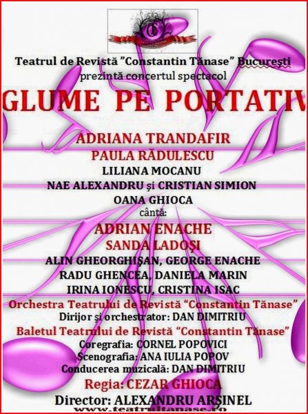 Teatrul de Revistã ”Constantin Tãnase” Bucureşti prezintã concertul spectacol GLUME PE PORTATIV cu: