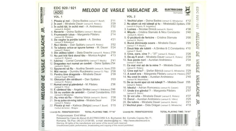 Dublul CD este scos la Electrecord şi însumează 43 de melodii. Coperta este în alb şi negru şi scrie simplu : Vasile V. Vasilache « Dreptul la neuitare ».